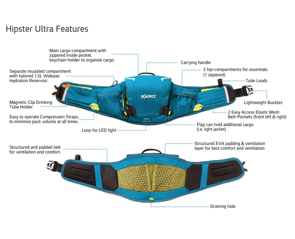 Klasyczny model Hipster zyskał uznanie i wiele nagród u blogerów, wśród magazynów rowerowych i oczywiście rowerzystów na całym świecie, ponieważ uwalnił od ciężaru plecy i ramiona użytkownika. Hipster Ultra zwiększa pojemność całościową klasycznego Hipstera, zachowując jednocześnie jego zalety. Inteligentna konstrukcja oraz stabilne i wygodne dopasowanie sprawiają, że jest idealnym towarzyszem na jednodniowe wycieczki, biegi treningowe a nawet dla zawodników enduro lub ultra.