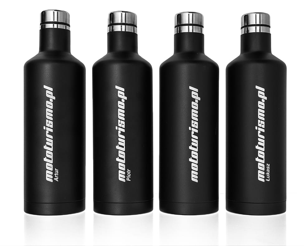 Wykonujemy takie laserowe nadruki na butelkach metalowych, już od zakupionej jednej sztuki.